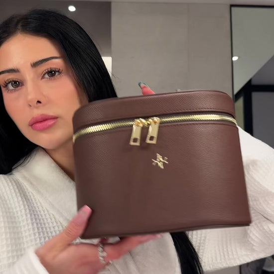 LOVE this vanity case. I take it on all my trips, and it easily fits in my carry on. It has enough space for my entire routine plus a few extras. It's really good quality and is exactly as pictured.